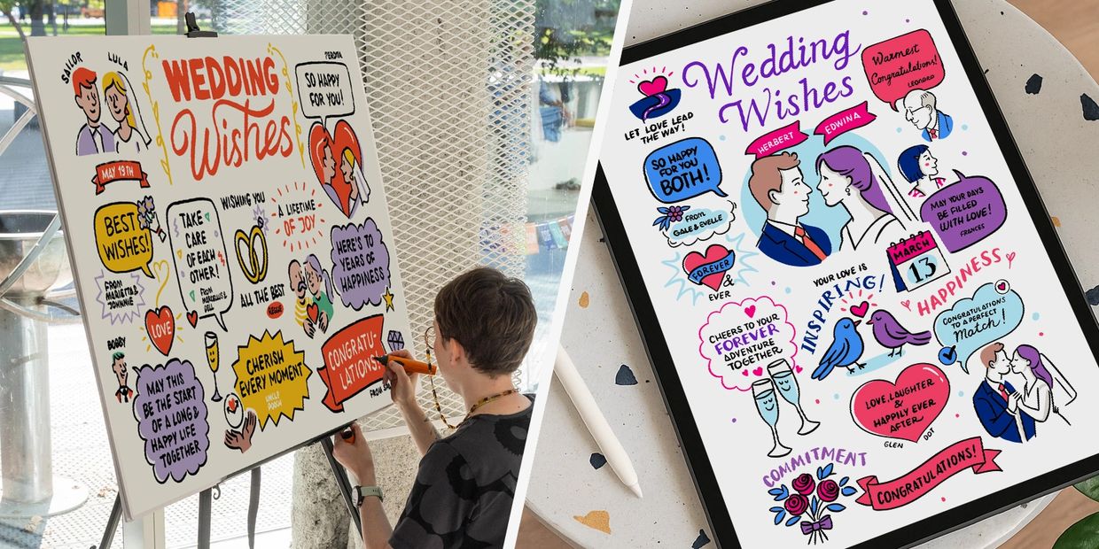 Planning a wedding but know someone organizing a company event? I also create real-time visual notes for corporate clients like Google, Coca-Cola, Deloitte, Samsung, and many more. Live visual notes help teams connect, remember key ideas, and spark meaningful conversations. If you're planning a retreat, offsite, or conference—I'd love to help.